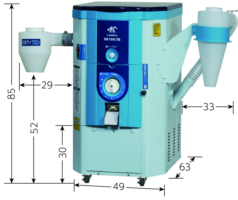 | 大きさ・質量 | 52(糠サイクロン33 / 白米サイクロン32)×61×93cm / 84kg |